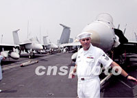 組圖:美國海軍航空母艦“星座號”抵達(dá)香港訪問 2001年08月20日 17:35 ![]() 美國海軍航空母艦“星座號”20日抵達(dá)香港訪問,該艦載有約八十架戰(zhàn)機,是美國現(xiàn)役海軍最具規(guī)模的船艦之一。中新社傳真 盧峰 攝 ![]() 美國航空母艦“星座號”20日抵達(dá)香港,進(jìn)行補給及維修,并公開予傳媒參觀。圖為一名海軍士兵向傳媒介紹艦上設(shè)施。中新社傳真 盧峰 攝