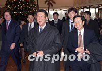 圖文:澳門特區(qū)行政長官何厚鏵抵達北京述職 2001年12月25日 17:36 ![]() 前來述職的澳門特別行政區(qū)行政長官何厚鏵,二十五日抵達北京并下榻港澳中心。國務院港澳辦公室副主任陳佐洱在港澳中心大堂迎接。中新社記者 毛建軍 攝 ![]() 前來述職的澳門特別行政區(qū)行政長官何厚鏵,二十五日抵達北京并下榻港澳中心,國務院港澳辦公室副主任陳佐洱在港澳中心大堂迎接。中新社記者 毛建軍 攝