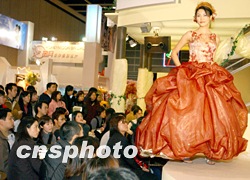 圖:香港婚紗展上模特展示紅色婚紗 2002年02月02日 20:30 ![]() 規(guī)模盛大的香港婚紗展2月2日在香港會展中心開幕,除了傳統(tǒng)的白色婚紗外紅色婚紗格外受歡迎。中新社傳真任晨鳴攝