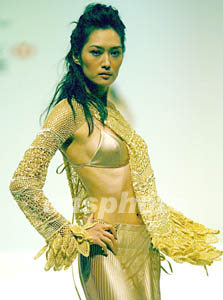 ![]() 香港知名時裝設計師馬偉明設計的一款從側面展現女子美麗身段的上裝,前日在香港時裝節晚會上展示。任晨鳴 攝