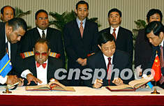 與臺(tái)灣“斷交” 瑙魯與中國(guó)建立大使級(jí)外交關(guān)系 2002年07月21日 14:10 ![]() 中華人民共和國(guó)外交部部長(zhǎng)助理周文重與瑙魯共和國(guó)總統(tǒng)勒內(nèi)·哈里斯在香港分別代表各自政府在中、瑙兩國(guó)建立外交關(guān)系的聯(lián)合公報(bào)上簽字。潘索菲 攝