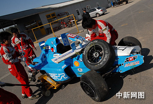 在10月下旬結束的AGF北京站上,上海永久車隊的張臻東在第一回合決賽中撞到了賽道防撞墻,車體嚴重受損,但身體安然無恙,讓這場意外的撞車變得有驚無險。AGF的賽車嚴格遵循了國際汽聯的同級標準:座艙內的駕駛員頭部保護裝置,車身前部的碰撞系能結構、車載防火系統以及注油系統都具有較高的標準;座椅采用了輕質、堅硬的碳纖維材料,配以經過FIA認證的可調式六點安全帶,車手可以被牢牢地固定在座艙內,加上車手頭頂的防滾支撐環,最大限度地保證了車手的安全。