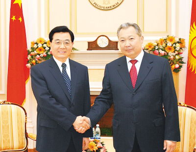 胡錦濤同吉爾吉斯斯坦總統巴基耶夫舉行會談