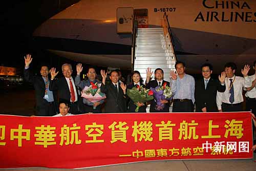七月二十日凌晨零時三十三分,兩岸首班專案貨運包機--臺灣“中華航空公司”CI6901航班飛抵上海浦東國際機場。據了解,本次專案貨運包機搭載的是在滬辦廠的臺商為擴大產能而托運的機械設備和相關器材。業內人士分析,兩岸貨運包機的實現,一定程度上能夠滿足臺商特別是高科技廠商在大陸投資的實際需求,同時,這也是兩岸空中通航在原有基礎上又邁出的新一步。 中新社發 潘索菲 攝