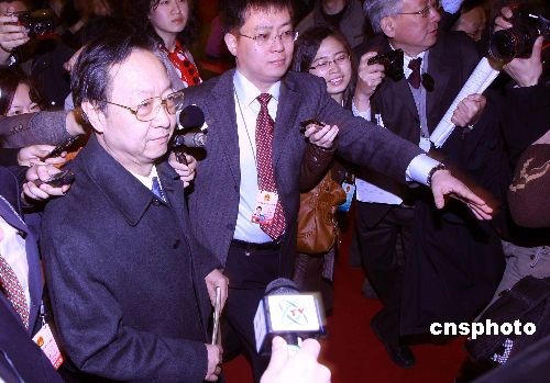 3月5日,十一屆全國人大一次會議在北京開幕,國家安全生產(chǎn)監(jiān)督管理總局局長李毅中一露面即被記者“關(guān)照”合圍,追訪安全生產(chǎn)老大難問題。中新社發(fā) 張宇 攝