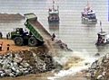 圖:三峽導流明渠截流上游圍堰開始截流