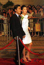 香港影星、《花樣年華》的男主角梁朝偉與劉嘉玲出席二十二日在香港文化中心舉行的首映式。中新社傳真 任海霞 攝