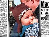 這張照片是《太陽報》的狗仔大隊在他們夫妻倆帶著兒子逛紐約大街時拍到的。當天天清氣爽,蓋·里奇抱著頭戴毛帽、身穿最流行小背心的小羅科,正要過馬路去跟孩子的娘會合。而麥當娜正在另一家百貨公司,搶買打折的嬰兒用品。