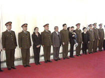 中共中央政治局常委、中國國家副主席、中央軍委副主席胡錦濤(左六)率領軍方最高層領導,二十四日在北京會見“海空衛士”王偉烈士的親屬并合影留念。