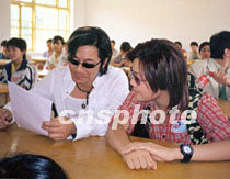 “星火行動”之粵北科教新紀元扶貧助學系列活動,五月十四日至十六日在韶關市拉開序幕!靶腔饜坌拇笫埂蓖踅堋⑷葑鎯簛淼绞寂d縣澄江中學,與學生一起上物理課。中新社圖 馮昶 攝