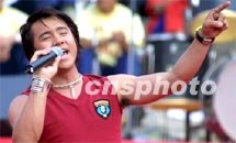 歌星紅豆在大寨申奧演唱會上。中新社圖 魏孝明 攝