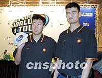 圖:王治郅、姚明將參加NBA星光大賽 2001年07月17日 21:40 ![]() 一場原汁原味的NBA比賽將于九月十六日首次在上海舉行。這場名為NBA NIKE星光大賽對賽的陣容是由NBA球星以及中國當地最佳球員混合組成。圖為王治郅、姚明在上海表示要盡力打好比賽。中新社記者 潘索菲 攝