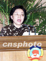 ![]() 全國政協人口資源環境委員會副主任江澤慧六日在北京舉行的“21世紀論壇--綠色與環保2001會議”閉幕會上致辭,倡議人們攜手共建人類綠色文明。中新社記者 滿會喬 攝