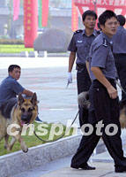 圖:南京建國以來首次施行一級安保 2001年09月16日 15:43 ![]() 第六屆華商大會即將在南京開幕,十六日清晨四只防暴犬在警員的帶領下對主會場進行全面勘察,這是南京市建國以來首次實施國家一級安保措施。中新社記者 鄭萍萍 攝 |