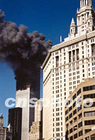 圖:美世貿(mào)中心被撞擊之后(資料圖片) 2001年09月19日 11:36 ![]() 美國(guó)紐約曼哈頓市區(qū)世界貿(mào)易中心雙子星九月十一日上午被恐怖襲擊爆炸燃燒之況,此是二號(hào)樓倒塌后,一號(hào)樓繼續(xù)燃燒。中新社圖(資料圖片) |
