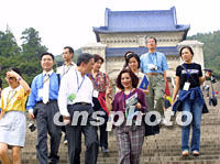 出席第六屆世界華商大會的代表十九日在南京中山陵參觀。中新社記者 李剛 攝