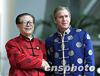 圖:江澤民在上海科技館迎接布什 2001年10月21日 17:25 ![]() 10月21日,中國國家主席江澤民在上海科技館迎接美國總統(tǒng)布什。亞太經(jīng)合組織第九次領(lǐng)導(dǎo)人非正式會議在這里舉行。中新社圖 |