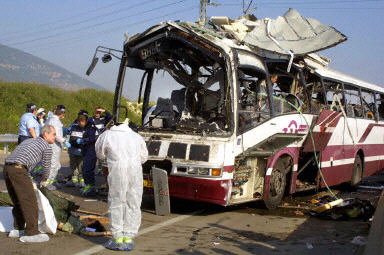 多圖:海法發生汽車炸彈爆炸事件 哈馬斯宣布負責 2002年04月10日 17:01 ![]() 以色列警方在檢查爆炸汽車的殘骸 ![]() 救援人員將遇難者尸體從汽車殘骸內抬出 中新網北京4月10日消息:當地時間4月10日早(北京時間10日中午),以色列北部港口城市海法發生一起自殺爆炸事件,至少造成10人死亡,另有20人受傷。 爆炸發生在一輛公共汽車上,這輛車是從海法開往耶路撒冷的。以色列方面稱此次爆炸為“恐怖襲擊”,哈馬斯組織已經宣布對此次爆炸事件負責。 爆炸發生前幾小時,以軍曾于黎明時分向約旦河西岸最大城市納布盧斯的巴勒斯坦難民營發動進攻,現場可見煙火沖天,以軍炮火、重機槍頻頻開火,以軍直升機也發射了多枚導彈。杰寧也發生了交火。 爆炸給海法帶來巨大恐慌,3月31日,海法一家餐廳就曾發生一起自殺性爆炸事件,造成16人喪生。昨晚,以軍士兵在約旦河西岸城市杰寧的難民營遭到伏擊,13人喪生,9人受傷。這是近18個月來以色列方面發生的最嚴重單起傷亡事件。以色列總理沙龍隨后稱,以軍在約旦河西岸的軍事行動將繼續,直到將巴勒斯坦武裝分子徹底鏟除。(春風)