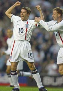 新隊長歐文光芒四射 率英格蘭4球痛破鐵桶陣 2002年04月18日 08:56 ![]() 新隊長歐文光芒四射 中新網北京4月18日消息:在今天凌晨結束的一場熱身賽中,英格蘭隊在利物浦安菲爾德球場以4比0狂勝來訪的巴拉圭國家隊。首次擔任隊長的小將歐文閃亮登場,只用了4分鐘就敲開了對方的大門,墨菲與瓦塞爾也錦上添花,而巴拉圭隊后衛阿亞拉的一個烏龍球則徹底喪送了老馬爾蒂尼的球隊。 由于隊長貝克漢姆因傷缺席昨天的比賽,因此22歲的歐文成為場上隊長,他也是英格蘭歷史上的第二年輕的隊長。比賽中,頂替貝克漢姆擔任右前衛的中場大將杰拉德發揮出色,他所領導的中場在上半場完全控制了場上局面。比賽開始后4分鐘,與歐文搭檔的前鋒瓦塞爾贏得一個任意球,杰拉德右路將球開出,歐文在門前高高躍起,將自己好友的傳球頂進了對方替補奇拉維特出場的塔沃雷利的把守的大門。 杰拉德繼續光芒四射,他和歐文的在20分鐘后的一次配合險些將比分擴大為2比0。當時他長傳歐文,歐文胸部停下杰拉德的長傳,在門前16米處半凌空射門高出。 下半時,埃里克森一口氣換上喬-科爾,哈格里夫斯,辛克萊爾,福勒,邁爾斯和墨菲。第47分鐘,才華橫溢的中場小將喬-科爾在左路策動一次進攻,將球傳給福勒,后者將球回敲給小將墨菲,墨菲低射將比分改寫為2比0。 喬-科爾隨后又獲得一次機會,他險些單刀赴會再下一城。不過瓦塞爾在7分鐘后替他出了口氣,他的射門打在防守隊員的腿上折射后入網,這也是瓦塞爾三場國家隊比賽中的第二個入球。此后,得勢不饒人的英格蘭隊繼續在對方門前狂轟濫炸,第78分鐘,阿亞拉搶在謝林漢姆的逼搶下忙中出錯,自擺烏龍,將比分擴大為4-0。 賽后,新隊長歐文非常興奮,他表示球隊已經從1-2輸給意大利隊的陰影中擺脫出來。“我們上一場比賽很不如意,不過今天晚上我們向世人展現了自己的實力。這是一場偉大的比賽,將大大增強我們的自信心。” 這也是主教練埃里克森的第13場國家隊比賽,賽后他特別表揚了杰拉德,“斯蒂文是世界上最優秀的中場球星之一,我們知道他能夠控制中場,并能在其他領域也做的很好。” 英格蘭(4-4-2):西曼/加里-內維爾(卡拉格,第69分鐘),基翁(邁爾斯,第46分鐘),索斯蓋特(謝林漢姆,第69分鐘),布里吉(菲爾-內維爾,第69分鐘)/巴特(喬-科爾,第46分鐘),杰拉德(辛克萊,第46分鐘),斯科爾斯(福勒,第46分鐘),代爾(墨菲,第46分鐘)/歐文(哈格里夫斯,第46分鐘),瓦塞爾(蘭帕德,第69分鐘)。 巴拉圭首發陣容(4-4-2):塔瓦雷利/阿爾斯,阿亞拉,加馬拉,卡尼薩/加維蘭,斯特魯維,博內特,帕雷德斯/圣-克魯斯,卡多索。
