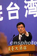 國務院臺灣事務辦公室二十四日在北京釣魚臺大酒店舉行新聞發布會,由新聞發言人李維一回答記者提問。中新社記者 毛建軍 攝