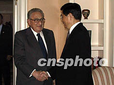 圖:胡錦濤副主席會見美國前國務卿基辛格 2002年04月30日 13:59 ![]() 中國國家副主席胡錦濤二十九日下午在下榻的華爾道夫酒店會見了美國前國務卿基辛格。中新社記者 趙海燕 攝