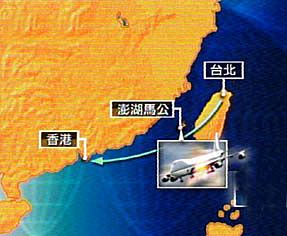 圖:臺灣墜海客機飛行路線示意圖 2002年05月25日 18:52 ![]() 鄭重聲明:關于臺灣華航飛機失事的新聞信息,系中新網特稿,未經書面授權,不得采用。