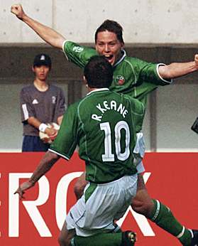 雙方各打半場好球 "雄獅"喀麥隆1-1平愛爾蘭(圖) 2002年06月01日 16:44 ![]() 愛爾蘭隊球員羅比-基恩與隊友為霍蘭德的進球而歡呼。共同社圖 中新網(wǎng)東京6月1日消息:在剛剛在日本新瀉結束的世界杯外圍賽E組的首回合的第一場比賽中,“非洲雄獅”喀麥隆隊在領先一球的大好形勢下,被“綠衣男孩”愛爾蘭隊將比分追平,雙方以1-1結束了比賽。 由于隊長羅伊·基恩在世界杯前因為和教練不和而退出,愛爾蘭隊的實力大打折扣。為此,愛爾蘭不得不以22人參加世界杯的比賽。而喀麥隆隊陣容完整,賽前顯得信心十足,表示要學習塞內(nèi)加爾好榜樣,全取3分。 上半場喀麥隆隊表現(xiàn)出色,他們利用嫻熟的個人技術,不但向愛爾蘭隊的腹地發(fā)動沖擊。在鋒線上,在比賽中,姆博馬和埃托奧配合默契,給對手以很大的壓力。相對而言,愛爾蘭則遲遲沒有找到感覺,在比賽中顯得節(jié)奏有些跟不上,顯得很被動。比賽僵局在第39分鐘打破,埃托奧在右路利用出色的個人技術撕開對手的防線,并且將門將吸引出來,隨后他將球傳給門前的姆博馬,后者一蹴而就,率先破門得手。 此后,一球在手的喀麥隆隊開始有些放松,最終在上半場以1-0結束該場比賽。在下半場,愛爾蘭隊開始顯示出他們預選賽淘汰荷蘭隊的比賽中的素質(zhì),開始控制了比賽節(jié)奏。 下半場開始7分鐘后,愛爾蘭人的努力得到回報,由于喀麥隆隊后衛(wèi)解圍時出現(xiàn)低級失誤,將球送到中路愛爾蘭隊霍蘭德的腳下,后者迎球怒射,幸運的將球送入對方大門。 此后,愛爾蘭圍著喀麥隆隊的大門狂轟濫炸,其中一次射門擊中門柱,但是只開花不結果,最終雙方以1-1握手言和。 愛爾蘭(442):吉文;凱利,哈特(77分鐘,雷德),斯湯頓,布林;麥卡蒂爾(46分鐘,菲南),霍蘭德,基爾巴尼,金塞拉;達夫、羅比-基恩 喀麥隆(3-5-2):門將:阿利烏姆;沃姆,宋,卡拉;查托,格雷米,勞倫,福,奧萊姆貝;埃托奧、姆博馬(69分鐘,蘇佛)
