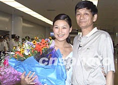 ![]() 剛剛在波多黎各首府舉行的“2002環(huán)球小姐”比賽中榮獲季軍的19歲上海姑娘卓靈,十一日載譽(yù)回到北京,她的父親卓祥秉專程從上海趕赴北京首都機(jī)場(chǎng),迎接女兒回家。 作者:章永哲