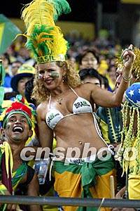 巴西隊在在世界杯足球賽半決賽中以一比零小勝土耳其隊而進入決賽。身著比基尼的巴西女球迷引人注目。作者:毛建軍