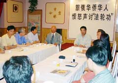 旅俄華人華僑聲討"法輪功"攻擊鑫諾衛(wèi)星丑行(圖) 2002年07月11日 14:50 ![]() 旅俄華人華僑代表10日上午在莫斯科長(zhǎng)城飯店舉行座談會(huì),憤怒聲討邪教組織“法輪功”攻擊祖國(guó)大陸鑫諾衛(wèi)星的丑惡罪行。(《莫斯科華人報(bào)》供圖) 中新網(wǎng)北京7月11消息:旅俄華人華僑代表10日上午在莫斯科長(zhǎng)城飯店舉行座談會(huì),憤怒聲討邪教組織“法輪功”攻擊祖國(guó)大陸鑫諾衛(wèi)星的丑惡罪行。 據(jù)《莫斯科華人報(bào)》報(bào)道,座談會(huì)是由旅俄華人華僑“促進(jìn)中國(guó)和平統(tǒng)一反對(duì)邪教”委員會(huì)組織的。 會(huì)議由委員會(huì)第一副會(huì)長(zhǎng)溫錦華主持,委員會(huì)會(huì)長(zhǎng)韓存禮作了主旨發(fā)言。他說(shuō),“法輪功”攻擊鑫諾衛(wèi)星,是一起世所罕見(jiàn)、嚴(yán)重踐踏國(guó)際法準(zhǔn)則和公共道德的違法犯罪行為,是李洪志及其邪教組織一系列違犯犯罪活動(dòng)的又一次升級(jí)。 韓存禮表示,無(wú)數(shù)次事件證明,“法輪功”是一個(gè)徹頭徹尾的、禍國(guó)殃民的邪教組織,它把邪教凌駕于公眾利益之上,凌駕于社會(huì)準(zhǔn)則之上,與人民為敵,與社會(huì)公眾利益為敵。因此,旅俄的廣大華人華僑強(qiáng)烈要求祖國(guó)政府依法嚴(yán)懲攻擊鑫諾衛(wèi)星的肇事者。 旅俄華人華僑“促進(jìn)中國(guó)和平統(tǒng)一反對(duì)邪教”委員會(huì)的其他委員也作了發(fā)言。他們指出,“法輪功”攻擊鑫諾衛(wèi)星、干擾電視節(jié)目信號(hào)的傳送是一起極為嚴(yán)重的事件。它直接破壞了公共信息安全,侵害了廣大民眾獲得信息的權(quán)利,是向公認(rèn)的國(guó)際秩序挑戰(zhàn),向社會(huì)公德挑戰(zhàn)。 他們表示,一定要保持高度的警惕,與全世界主持正義的人們一道,與“法輪功”邪教組織的種種犯罪行為進(jìn)行堅(jiān)決的斗爭(zhēng),絕不能讓其陰謀得逞。