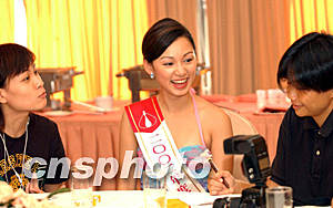 ![]() 參選香港小姐競選的佳麗嘉碧儀,賽前連奪多個大獎而在決賽晚卻大熱倒灶,三甲不入。12日仍然與傳媒談笑風生。洪少葵 攝