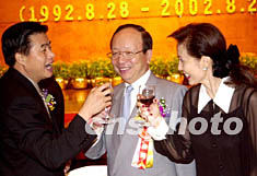 廣州臺資企業協會成立十周年慶典大會二十八日晚在廣州花園酒店舉行,“中國臺商發展促進協會”理事長章孝嚴先生〔中〕也參加了此次盛會。作者:羅仰明