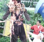 臺灣愛國同心會等團體成員上午在“立法院”門外,以鞭打畫著李登輝臉譜人偶等方式,表達對李登輝的不滿。他們要求李登輝必須為自己的“賣國”言行道歉,否則他們將效法當初向李登輝潑紅墨水的史力行,“李登輝走到哪里,就跟到哪里”。
