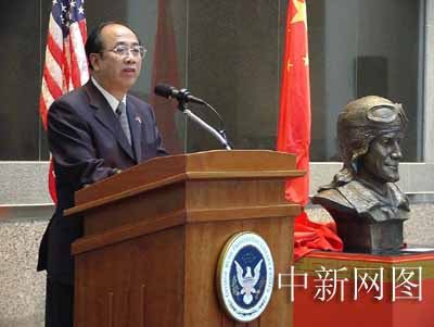 今天下午,趙啟正在銅像揭幕儀式上致詞說(shuō):中國(guó)人為年輕的福克斯設(shè)計(jì)、鑄造了銅像。中國(guó)國(guó)家主席江澤民也為銅像親筆題詞:“這是一位在中國(guó)抗日戰(zhàn)場(chǎng)英勇獻(xiàn)身的美國(guó)飛行員。中國(guó)人民將永遠(yuǎn)記住他的名字——吉米·福克斯。”