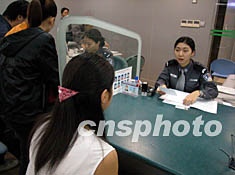 從十一月一日始,廣州市民可以憑居民身份證、戶口簿前往出入境管理部門申請辦理護照。這一辦法的出臺大大方便了市民因私出國探親旅游等。圖為廣州市民在出入境管理部門辦證大廳申辦護照。作者:陳文