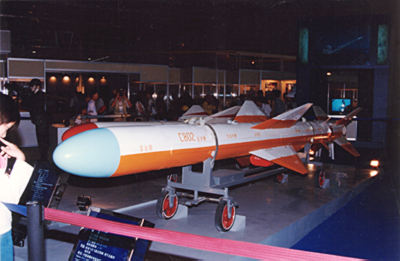 C-802反艦導彈武器系統(tǒng)由中國海鷹機電技術(shù)研究院研制,是C801導彈的改進型號,其主要改進是將固體火箭巡航發(fā)動機換裝成渦輪噴氣式發(fā)動機,彈體結(jié)構(gòu)以及其他彈上分系統(tǒng)也相應(yīng)地作了較大改進,外觀上C802明顯比C801長,彈腹部還多一個渦輪噴氣式發(fā)動機的進氣口,但導彈總重反而更輕了。目前,C802導彈已有多種改進型號,形成了一個C802導彈族。C802導彈不僅可以岸上機動發(fā)射,還可以從艦艇、飛機等多種發(fā)射平臺上發(fā)射。C802導彈采用單脈沖體制末制導雷達,該雷達具有多種抗干擾措施。C802導彈全長6.392米。