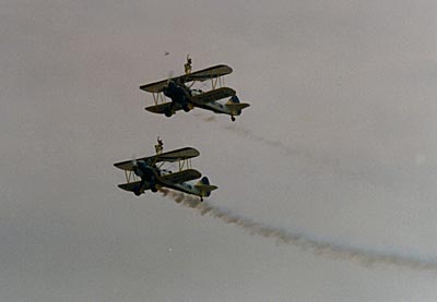 隨后,中國航空工業總公司研制生產的F-8IIM、F-7MG戰斗機、K-8型教練機、直九型飛機舉行特技飛行表演;俄羅斯‘試飛院’特技飛行隊的蘇27、蘇30戰斗機進行了特技飛行表演,中國航天工業總公司齊射2000枚航天火箭模型,引起一陣驚嘆。整個航展過程中,幾十架中外飛行愛好者駕駛的特技飛機,超輕型飛機,動力傘,熱氣球連續不斷地升空比賽,嗡嗡的發動機鳴叫聲和穿梭往來的小飛機給航展增添了許多節日氣氛,尤其受到孩子們的歡迎。
