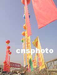 在長江三峽工程導流明渠截流現(xiàn)場,五日已搭建好截流儀式會場,六日將從這里發(fā)布合龍命令。