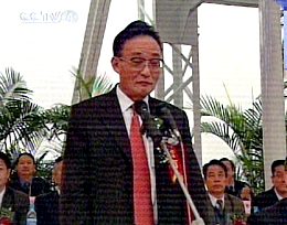 圖:國務院副總理吳邦國宣布截流儀式開始