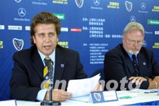 六日,國際網球聯合會執行副總裁德萊維特在上海出席2002網球大師杯抽簽儀式。德萊維特表示,整個賽事的籌備工作令人感到驚喜,非常有信心讓這次在上海舉行的大師杯賽獲得成功。圖為ATP執行副總裁德萊維特在本次賽事抽簽儀式上。作者:湯彥俊