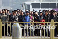 一些民眾在北京人民大會堂外駐足觀望中共十六大會場,關注舉世矚目的盛會。 作者:毛建軍