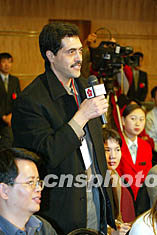 中共十六大新聞中心十三日舉行最后一場記者招待會,由中國外經(jīng)貿(mào)部部長石廣生答記者問。卡塔爾半島電視臺記者在新聞發(fā)布會上提問。