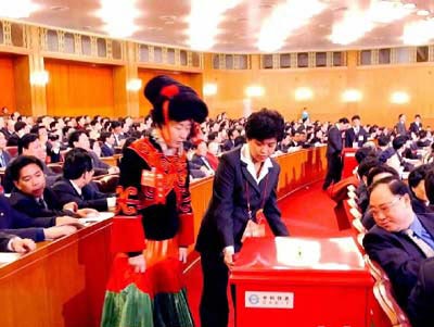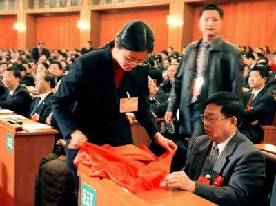 十六大閉幕會:代表領取3張選票 正在投票(圖)