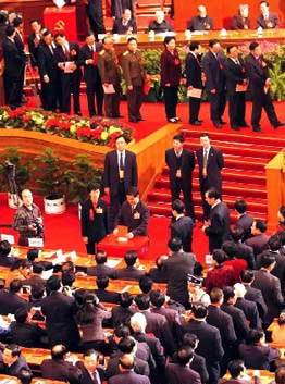 江澤民、李鵬、朱镕基、李瑞環、胡錦濤、尉健行、李嵐清已相繼在位于主席臺正中的票箱投票。同時,代表和特邀代表們也開始投票。