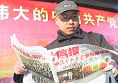 十五日清晨,十六大新一屆委員名單成為北京各大報紙頭條,引起社會各界高度關注。作者:廖文靜