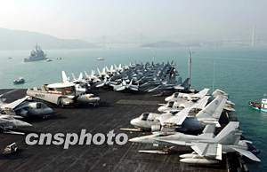圖文:美國"星座號"航母艦隊抵港 警方加強保安