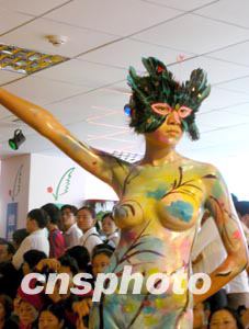 圖:2002年中國國際時裝周上的人體彩繪表演