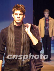 二十七日,男人的天空·阿德米男裝發布會在中國大飯店展現男性時裝的魅力。圖為外國模特展示阿德米男裝。作者:盛佳鵬