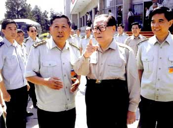 1999年1月5日,江澤民走進(jìn)作戰(zhàn)模擬大樓,觀看國防大學(xué)研制開發(fā)的“戰(zhàn)略決策訓(xùn)練系統(tǒng)”和“戰(zhàn)役指揮訓(xùn)練系統(tǒng)”。