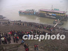 今天上午七點二十分左右,長壽區(qū)水運公司一號輪從長江北岸小巖子碼頭駛向長江南岸,與下水航行的宜盛號滾裝船相撞沉沒。長江一號輪準載二百五十人,實載乘客三十八人,船員九人,事發(fā)后客輪傾覆,人員全部落水。